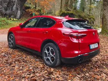 Verkaufe meinen Stelvio in einem schönen Zustand der motorisch und technisch einwandfrei ist. 8 Gang Automatik schaltet sich super und das Fahrgefühl ist einfach top. Sehr gute Ausstattung mit Teilleder , Abnehmbare Anhängerkupplung, Abstands Tempomat, Navi, Perksensoren vorne und hinten mit Rückfahrkamera usw. Service gepflegt, Services wurde gerade eben gemacht und dabei auch eine neue hardyscheibe eingebaut. Zahnriemen Service auch erledigt. Winterreifen neuwertig auf 18 Zoll original Alfa Felgen und Sommerreifen 6mm auf originale 19 Felgen. Radläufe, Seitenschweller , Heck und die frontlippe in schwarz lackiert wie bei einem veloce., schaut sehr sportlich aus und im Rot einfach toll. Bei Fragen einfach melden