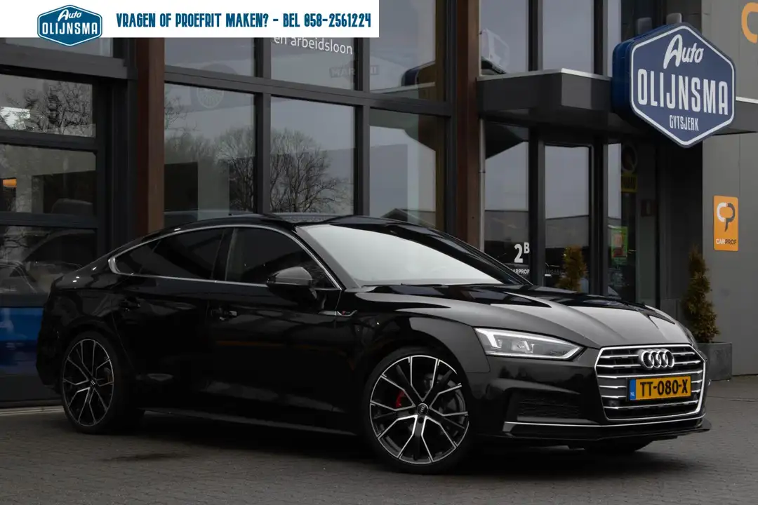 Omdat rijden een plezier mag zijn, staat deze Audi A5 Sportback enthousiast te glimmen in de showroom. Technisch in topconditie, strak in de lak... echt een droomauto! Voor liefhebbers van rijplezier is de S-Line styling een belangrijke reden om voor deze auto te kiezen. Hij heeft een benzinemotor en een automatische transmissie. Comfortabel zitten, ook als de rit onstuimig is? Dat kan met de sportstoelen. Een handige voorziening op deze auto is de elektrische achterklep die u op afstand kunt openen. Ook is de auto voorzien van: 20 inch lichtmetalen velgen, LED koplampen, sportonderstel, halflederen bekleding, warmtewerend glas en in delen neerklapbare achterbank.