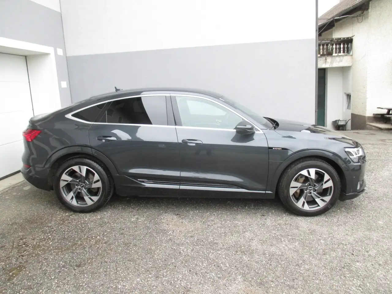 Angeboten wird ein Audi e-tron 50 Sportback S-Line Quattro Bj: 1/2022 in Manhattangrau Metallic und Top-Ausstattung Neupreis ca. 90 000€ :
