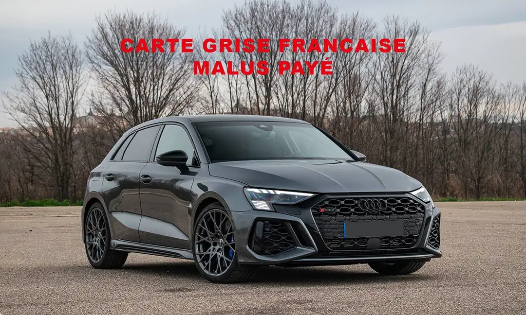 Cette RS3 est en carte grise française. Le malus a donc été intégralement payé (sur la base de 206 gr de CO2 au km).