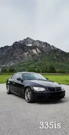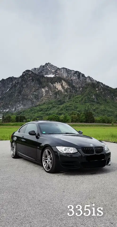 Design: M-Styling 313 Felgen, schwarze Nieren, spezifische 335is-Schriftzüge innen und außen, spezielle Abgasanlage mit tiefem Klang.