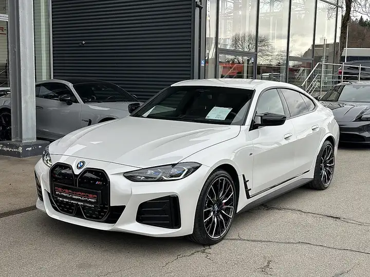 Zum Verkauf angeboten wird ein BMW i4 Gran Coupe xDrive M50 Aut., in der Farbe Mineralweiss Metallic, Interieur Leder in schwarz mit 19.928KM Laufleistung.