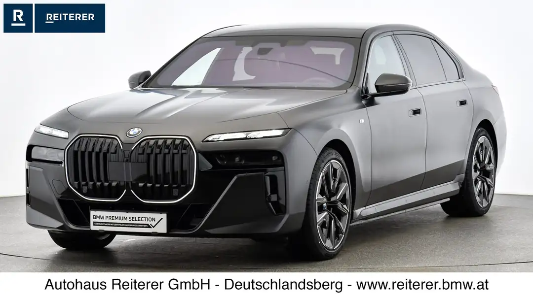 Vollelektrische Luxuslimousine der Spitzenklasse: Der BMW i7 xDrive60 mit 400 kW (544 PS) und xDrive Allradantrieb verbindet souveräne Performance mit maximalem Komfort. Die exklusive BMW Individual Lackierung Frozen Deep Grey metallic unterstreicht den repräsentativen Auftritt.