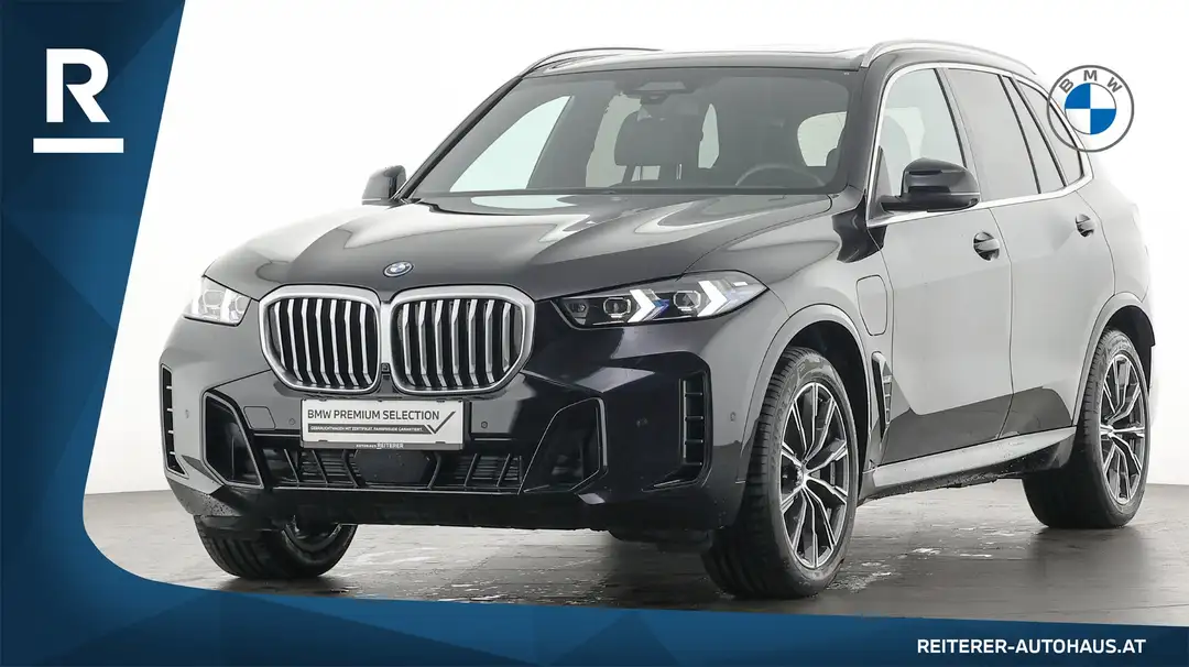 Der BMW X5 xDrive50e in Saphirschwarz kombiniert kraftvolle Plug-in-Hybrid-Technologie mit luxuriösem Komfort und eleganter Ausstattung.