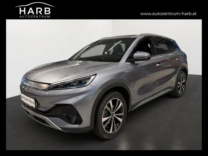 Comfort, ATTO 3 Comfort, Einfarbige Karosserie mit Metallic-Lackierung, Panorama Sonnendach (elektrisch,Einklemmschutz), Dachreling aus Aluminium, Reifen Continental 235/50 R18 mit 18 Zoll, LED Tagfahrlicht,LED Scheinwerfer&Heckleuchten, Fahrlichtautomatik & Fernlicht-Assistent, Follow Me Home-Funktion, Beheizte und elektrisch einklappbare Außenspiegel, Multifunktionslenkrad, veganes Leder, Sonnenblende mit beleuchtetem Kosmetikspiegel, Sonnenblende für Panorama Sonnendach, Mittelarmlehne mit doppeltem Getränkehalter, Hutablage, 12V Steckdose, Sitze aus veganem Leder, Fahrersitz mit Sitzheizung & 6fach Sitzverstellung, Beifahrerseitz Sitzheizung & 4fach Sitzverstellung, Dokumentenfach hinten an den Vordersitzen, Geteilt klappbare Rücksitze - 40:60, Kopfstütze am mittleren Rücksitz, 2x USB Ladeanschluss (1 x Typ A, 1 x Typ C) v&h, Fußraumbeleuchtung Fahrer- und Beifahrerseite, 4x LED Türleuchten, LED Leselicht vorne & hinten, Einfarbige Ambientebeleuchtung (Türgriff), 4x One Touch-Fensterheber mit Einklemmschutz, Automatisch abblendende Rückspiegel, 5-Zoll TFT LCD Informationsdisplay, Kabelloses Laden für Smartphones, BYD DiLink, DAB & FM Radio, Elektrisch drehbarer Touchscreen (12.8 Zoll), Audiosystem mit 8 Lautsprechern, Hi,BYD! Sprachsteuerung, Internet der Fahrzeuge (4G)¹, 8 Jahre Cloud Service, Fahrerairbag, Beifahrerairbag (deaktivierbar), Airbag vorne (Mitte), Sicherheitsgurtwarnung, Surround View System, Toter Winkel-Assistent, Blind Spot Detection (BSD), Elektronisches Stabilitätsprogramm (ESP), Integrated Power Brake (IPB), Antriebsschlupfregelung (ASR), Elektronischer Bremskraftverteiler, Comfort Stop (CST), Bergabfahrhilfe, Hill Descent Control (HDC), Elektrische Parkbremse (EPB), Auto-Hold-Funktion (AVH), Türöffnungswarnung, Door Opening Warning (DOW), Abstandsregeltempomat(ACC)&Intelligent Cruise(ICC), Intelligente Tempokontrolle (ISLI & ISLC), Verkehrszeichenerkennung, Antiblockiersystem (ABS), Kollisionswarnsystem (PCW), Automatische Notbremsung, Rear Collision Warning (RCW), Rear Cross Trafic Alert System, Rear Cross Brake, Spurhalteassistent, Spurwechselassistent, Notfall-Spurhalteassistent (ELK), 2x Radar-Parksensoren vorne, 4x Radar-Parksensoren hinten, Direktes Reifendruck-Kontrollsystem, Kindersicherung (mechanisch), 2x ISOFIX Rücksitz, 1x ISOFIX Beifahrer, Notrufsystem, 2x e-Schlüssel & 1x NFC Schlüssel, Keyless Entry & Keyless Start, Wärmepumpe, 11 kW On-Board-Charger, Sicherheitsgurte vorne höhenverstellbar Gurtstraff, Sicherheitsgurte hinten mit Gurtstraffer