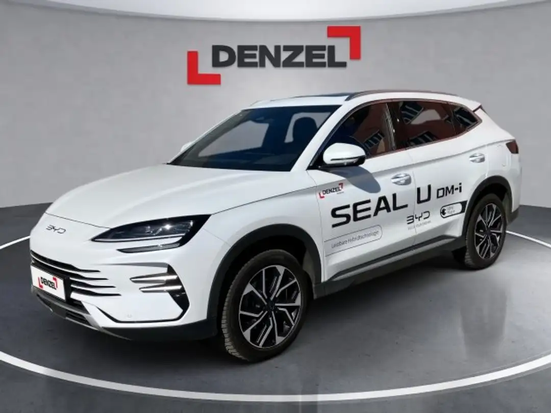 im Preis sind alle Boni bereits berücksichtigt, Seal U DM-i Design AWD, Panorama Sonnendach (elektrisch,Einklemmschutz), Elektrische Heckklappe, Dachreling aus Aluminium, LED Tagfahrlicht,LED Scheinwerfer&Heckleuchten, Follow Me Home-Funktion, Beheizte und elektrisch einklappbare Außenspiegel, Sonnenblende mit beleuchtetem Kosmetikspiegel, Mittelarmlehne mit doppeltem Getränkehalter, 2x USB Ladeanschluss (1 x Typ A, 1 x Typ C) v&h, Fußraumbeleuchtung Fahrer- und Beifahrerseite, PM2,5 Luftfilter, PM2,5 Luftreinigungssystem, DAB & FM Radio, Elektrisch drehbarer Touchscreen (15.6 Zoll), Hi,BYD! Sprachsteuerung, Internet der Fahrzeuge (4G), Fahrerairbag, Beifahrerairbag, Airbag vorne (Mitte), Airbag vorne (Seite), Sicherheitsgurt mit Gurtstraffer & Kraftbegr., Sicherheitsgurtwarnung, Toter Winkel-Assistent (BSD), Elektronisches Stabilitätsprogramm (ESP), Antriebsschlupfregelung (ASR), Elektronischer Bremskraftverteiler, Elektrische Parkbremse (EPB), Auto-Hold-Funktion (AVH), Türöffnungswarnung (DOW), Abstandsregeltempomat(ACC)&Intelligent Cruise(ICC), Verkehrszeichenerkennung, Antiblockiersystem (ABS), Kollisionswarnsystem (PCW), Spurhalteassistent, Spurwechselassistent, Notfall-Spurhalteassistent (ELK), Radar-Parksensoren vorne, Radar-Parksensoren hinten, Kindersicherung (mechanisch), 2x ISOFIX Rücksitz, 1x ISOFIX Beifahrer, Notrufsystem, Keyless Entry & Keyless Start, 11 kW On-Board-Charger, LED Scheinwerfer mit Lichtautomatik, Dynamische Blinklichter, Regensensor, 2x USB Ladeanschluss hinten, Mehrfarbige Ambientebeleuchtung, Head-Up-Display, Diebstahlsicherung, Multifunktionslenkrad mit Lenkradheizung, Vehicle Dynamics Control (VDC), Berganfahrhilfe (HHC), 16 Zoll Bi-Color Leichtmetallfelgen, Sitze aus veganem Leder, Sitzheizung vorne, LED Leselicht vorne & hinten, Intelligent Power Brake System (IPB), Metallic Lackierung, 2x kabelloses Laden für Smartphones, 360 Grad Kamera, Child Forgetting Detection (CFD), Beifahrersitz mit 4-Wege-Sitzverstellung, 7 kW On-Board-Ch