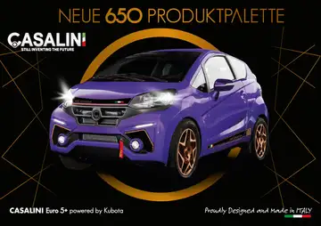Die neuen 2026 CASALINI - 650 Modelle vereinen sportliches Design, moderne Technologie und einen zuverlässigen Euro 5+ Kubota Motor. Insgesamt stehen drei Versionen (CASALINI - 650STARTER / 650XTREME / 650SPORTIVA) und zahlreiche Individualisierungsoptionen für maximale Fahrfreiheit und Stil zur Verfügung.