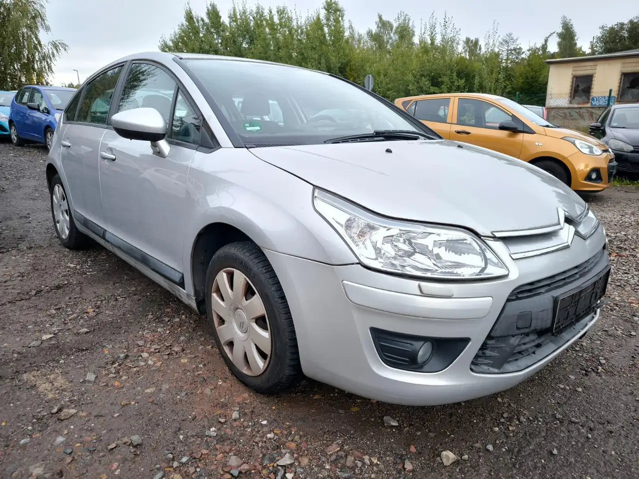 Das Auto hat Beulen und Kratzen.