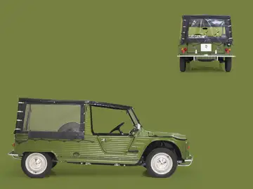 The name Mehari comes from a species of dromedary found in North Africa and the Sahara. These animals are known for their ability to cope well in rough terrain, for their great perseverance and for their low need for food and drink. The North African meharis can transport goods and people over great distances through rough terrain and that is why their name fits so well with this versatile Citroën, which can also master rough terrain and has unprecedented capabilities.From a distance, the Mehari does not seem very suitable for every season. It looks more like a small convertible or a beach car. But thanks to its roll-up winter hood, it can withstand inclement weather conditions and can be used all year round.