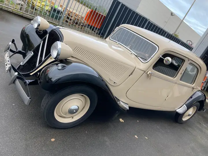 Hallo, ik bied aan mijn mooie en goed rijdende Citroen Traction Avant BN in de beperkte originele kleurcombinatie beige/zwart.De citroen is heel ruim van binnen en uitgevoerd met kofferklep, zie foto.De restauratie van deze Citroen is ongeveer 13 jaar geleden uitgevoerd en daarna goed onderhouden, staat binnen en rijd niet met regen!Zijn er vragen dan hoor ik die graag.