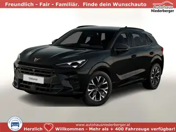 Edge-Paket (Ambiente-Beleuchtung Smart Ambient Light / Einstiegsleisten vorn beleuchtet / Mittelarmlehne hinten / Klimaanlage Climatronic 3-Zonen / Schließ-/Startsystem Kessy / Seitenscheiben hinten und Heckscheibe abgedunkelt / Heckklappe/-Deckel elektr. betätigt (öffnen + schliessen, sensorgesteuert) / Fahrassistenz-System: Automatische Distanzregelung (ACC) / Lenkrad heizbar (Sport/Leder) mit Multifunktion und Schaltfunktion / Außenspiegel elektr. verstell-, heiz- und anklappbar / Diebstahl-Warnanlage mit Innenraumüberwachung und Abschleppschutz), Design-Paket Dynamic (Ambiente-Beleuchtung Smart Ambient Light mit Beleuchtung in Türinnenverkleidung / Lendenwirbelstützen vorn, elektr. verstellbar / Sitzbezug / Polsterung: Stoff Dinamica / Kunstleder Soul Black / Dark Slate-Grau mit Copper Steppung / Sitze vorn elektr. verstellbar (links mit Memory) / Sitzheizung vorn / Außenspiegel elektr. verstell-, heiz- und anklappbar, Spiegelabsenkung, Welcome Light, Memory), Intelligent-Drive-Paket (Kamerasystem Umgebungsansicht (Top View, 360°) / Fahrassistenz-System: Fernlichtassistent / Fahrassistenz-System: Totwinkel-Assistent mit Auspark-Assistent, Spurwechselassistent und Ausstiegswarnung / Fahrassistenz-System: Intelligent Park Assist (IPA) / Fahrassistenz-System: Intelligenter Parkassistent inkl. trainiertem Parken / Fahrassistenz-System: Pre-Crash-System / Fahrassistenz-System: Spurhalteassistent Plus inkl. Travel Assist, Emergency Assist und Stauassistent), Anhängerkupplung Vorbereitung, Audiosystem inkl. 12,9"-Touchscreen, Außenspiegel mit Projektionsfunktion, Induktionsladeschale für Smartphone, Isofix-Aufnahmen für Kindersitz an Beifahrersitz und Rücksitz, Leuchtweitenregulierung automatisch, LM-Felgen 8x18, Navigation in Verbindung mit dem Smartphone (über Apple Carplay / Android Auto /...), Reifen 235/55 R18, Rücksitzlehne geteilt/klappbar, Sportsitze vorn, Wireless FullLink (Apple CarPlay & Android Auto), Motor 1,5 Ltr. - 110 kW 16V eTSI Mild-Hybrid (DXDB) (Mild-Hybrid 110 kW (Motor 1,5 Ltr. - 110 kW eTSI)), 9 Lautsprecher, Doppeltonhorn, Fahrassistenz-System: Abbiegebremsfunktion und Ausweichunterstützung, Fußraumbeleuchtung LED, Gepäck-/Laderaumboden doppelt, Geschwindigkeitsbegrenzer mit vorausschauender Geschw.-Regelung, Innenspiegel mit Abblendautomatik, Karosserie: 5-türig, Kombiinstrument digital (10,25 Zoll), Kopfstützen hinten (3-fach), Leseleuchten hinten LED, Leseleuchten vorn LED, Parkbremse elektrisch mit Auto-Hold-Funktion, Radioempfang digital (DAB+), Radstand Standard, Sonnenblende links mit Spiegel (beleuchtet), Sonnenblende rechts mit Spiegel (beleuchtet), Warnanlage für Sicherheitsgurt-System, Sprachsteuerungs-System, USB-Ladeanschlüsse (2-fach, Typ C) für 2.Sitzreihe, USB-Schnittstelle vorn (2-fach, Typ C), Antriebsart: Frontantrieb, Elektron. Stabilitäts-Programm (ESP) mit Bremskraftverstärker elektro-mechanisch, Wegfahrsperre (elektronisch), Getriebe 7-Gang - Doppelkupplungsgetriebe DSG, Airbag Beifahrerseite abschaltbar, Airbag Fahrer-/Beifahrerseite, Fensterheber elektrisch vorn + hinten mit Komfortschaltung, Kopf-Airbag-System, Mittelarmlehne vorn, Seitenairbag, Seitenairbag vorn mitte (Central Airbag), Zentralverriegelung / Startanlage Keyless Go (Start-Stop-Knopf), Fahrassistenz-System: Fahrprofilauswahl (CUPRA Drive Profile), Dachreling schwarz, Fahrassistenz-System: Verkehrszeichenerkennung, Notrufsystem, Progressivlenkung, Heckleuchten LED mit dynamischem Blinklicht, Licht- und Regensensor, Lichtassistent (Coming Home, Leaving Home), Nebelscheinwerfer LED mit Abbiegelicht, Scheinwerfer Voll-LED, Tagfahrlicht LED, Einparkhilfe vorn und hinten, Fahrassistenz-System: Ablenkungs- und Müdigkeitserkennung, Fahrassistenz-System: Kreuzungs-Assistent (Crossroad Assist), Fahrassistenz-System: Spurhalteassistent, Fahrassistenz-System: Umfeldbeobachtungssystem (Front assist) mit City-Notbremsfunktion, Reifenkontroll-Anzeige