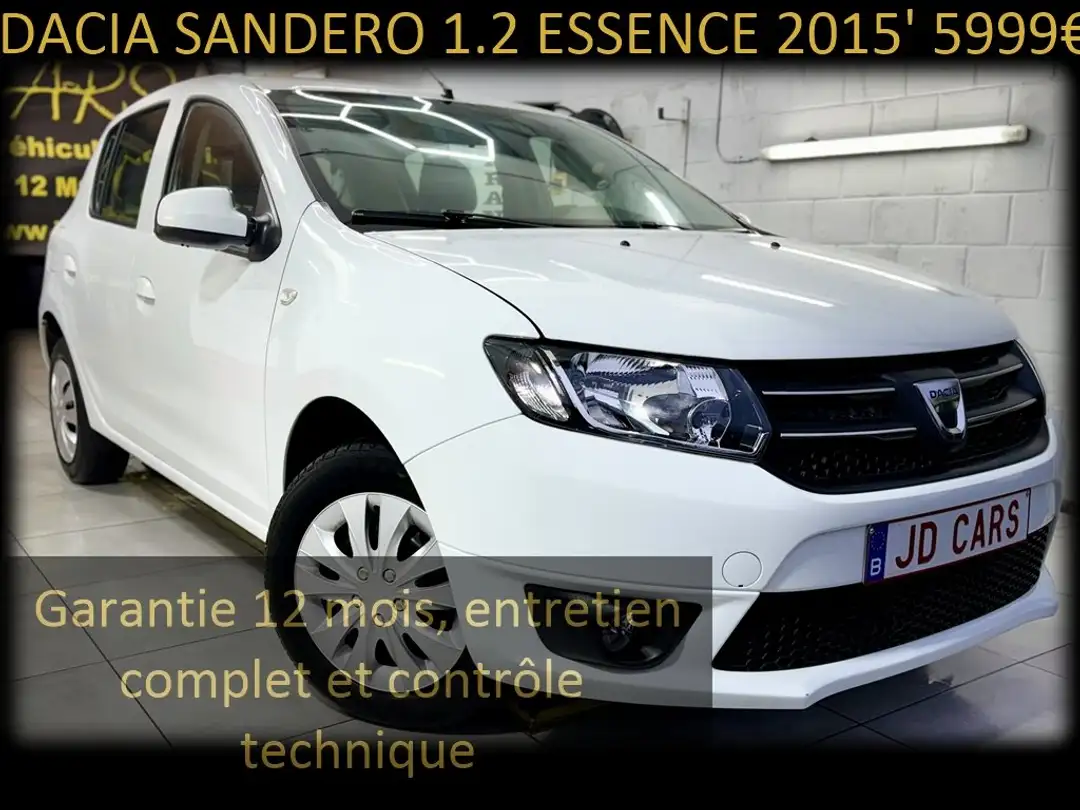 ‼️‼️Dacia Sandero, 1149cc Essence, 55kw, 75ch, 05/2015, 72100km certifié Carpass, 5 portes 5 places, Blanc, moteur euro 5b 135g/co2‼️‼️
