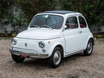 Fiat 500 L del 1970, proposta nel classico Bianco Fiat con interni rossi.