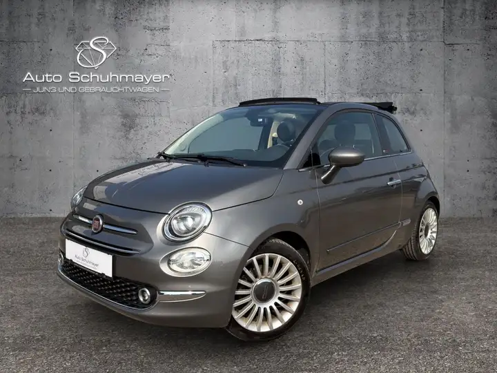 Zum Verkauf steht ein servicegepflegter Fiat 500C 1,2 in der Farbe „Pompei Grau“ aus Zweitbesitz.