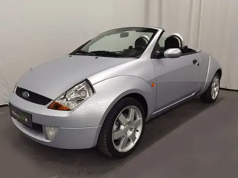 Cabrio 2-Sitzer, Sritziger 1.6 Benziner, Strato silber Metallic, Sitze Stoff schwarz, Stoffverdeck schwarz, Hardtop in Wagenfarbe, Original 16“ LM-Felgen, Sportsitze höhenverstellbar, Sportlederlenkrad, Drehzahlmesser, 5-Gang Schaltgetriebe., Alu-Schaltknauf, Fensterheber elektrisch vorne, Zentralverriegelung mit Fernbedienung, ABS Antiblockier Brems System, Elektronische Bremskraftverteilung, Servolenkung, Nebelscheinwerfer, Außenspiegel elektrisch verstell-& beheizbar, Airbag für Fahrer und Beifahrer, Seitenairbags, Beifahrer-Airbag Deaktivierung, Überrollbügel, Wegfahrsperre, Stoßfänger in Wagenfarbe, Außenspiegel in Wagenfarbe lackiert, Radio-Ford CD-Radio 6000, Reserverad vollwertig, Sommer + Winterräder auf LM-Felgen.