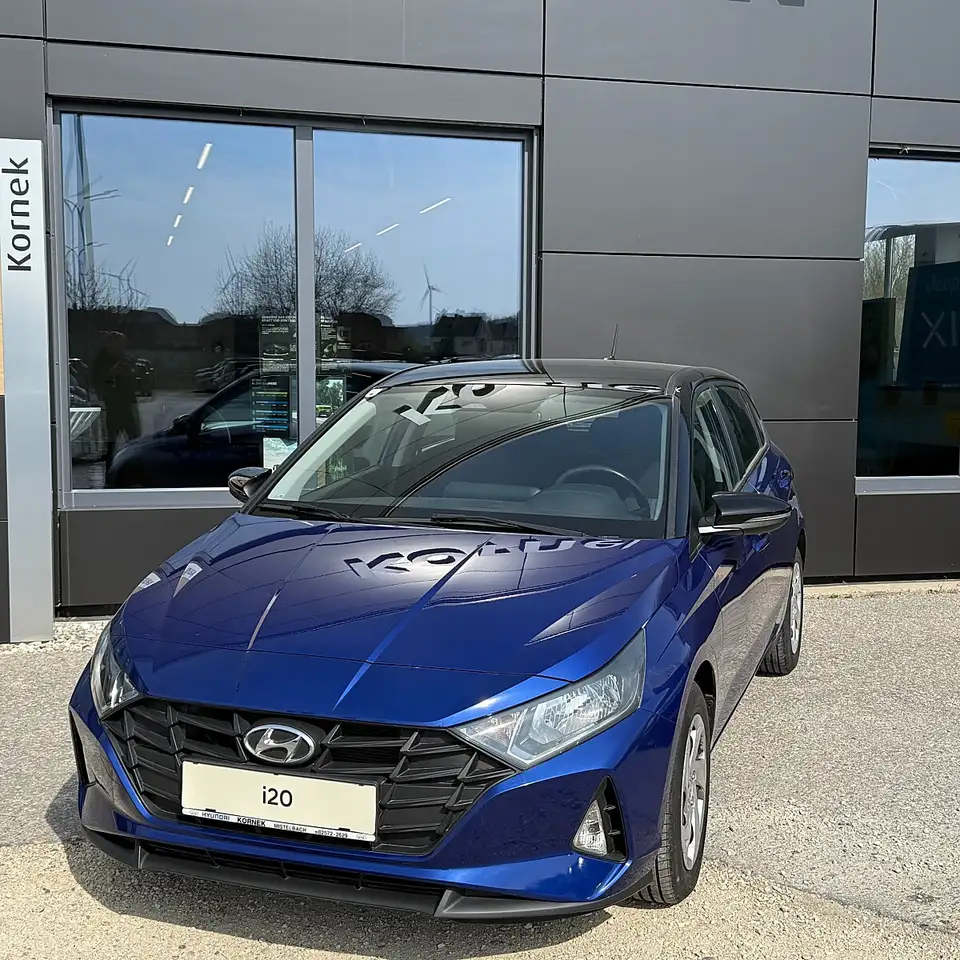 i20 mit wenig Kilometer, in blau mit Dach Schwarz inkl. Winterpaket (Sitzheizung, Lenkradheizung), ist schon das Modell mit der damals neuen Front.