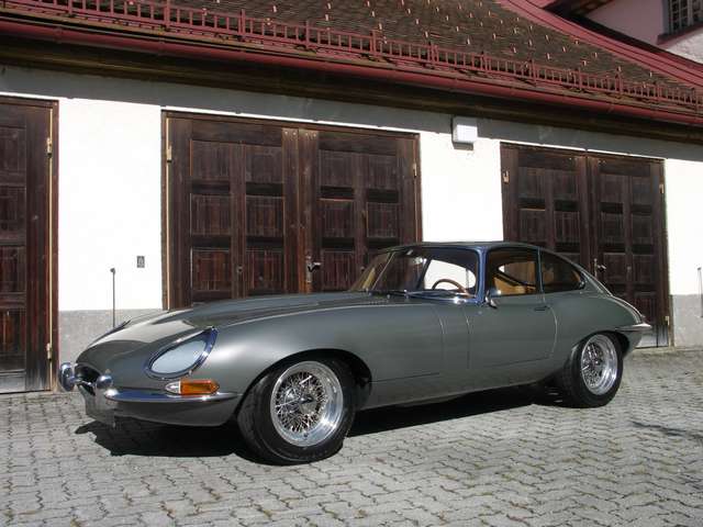 Zur Geschichte des 3.8 Liter Coupe, welches wir hier anbieten, wissen wir derzeit leider noch wenig - wir sind noch am recherchieren. In den 1990er Jahren war das schöne Coupe jedenfalls in Österreich zugelassen, Anfang der 2000er fand es den Weg nach Deutschland, wo es zuletzt in Bayern zugelassen war. Das Fahrzeug wurde vor etlichen Jahren aufwändig restauriert und dabei in teilen modifiziert. So wurde z.B. eine Alu-Motorhaube verbaut, das Moss-Getriebe auf ein modernes Getrag 5-Ganggetriebe umgebaut, innenbelüftete 4-Kolben Bremsen an der Vorderachse, sowie ein einstellbares Spax-Fahrwerk verbaut. Steifere Fahrwerksbuchsen, teure 7J15 Alu-Speichenfelgen von Borrani, ein abnehmbares Lenkrad mit Schnellverschuß, elektrische Servolenkung, Edelstahl Fächerkrümmer und Abgasanlage, und ein Alukühler mit elektrischem Lüfter runden die Modifikationen ab, die den E-Type jedenfalls sportlicher, belastbarer und fahrbarer machen. Großgewachsene Menschen tun sich bekannterweise aufgrund der, bei den Serie1 Fahrzeugen, doch etwas beengten Platzverhältnissen hinterm Lenkrad, etwas schwer. Dem hat man mit modifizierten, weit nach hinten versetzten Bucket-Seat´s, mit verschlankten Lehnen und abgepolsterten Sitzflächen entgegen gewirkt. So sitzt man auch mit 1,90m + sehr angenehm.