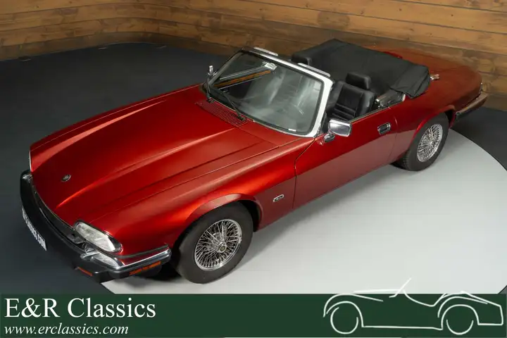The exterior immediately catches the eye thanks to the deep red paintwork, which combines beautifully with the black soft top and the elegant lines of the XJS. The classic spoked wheels underscore the car's timeless character. The interior exudes pure Jaguar luxury: black leather seats, a dashboard with wood inlays, and a harmonious interplay of materials and colors. This convertible is well-equipped with climate control, cruise control, and a power soft top, windows, and seats. Everything is designed for comfortable and stylish driving, whether with the roof down on a summer day or closed for longer journeys.