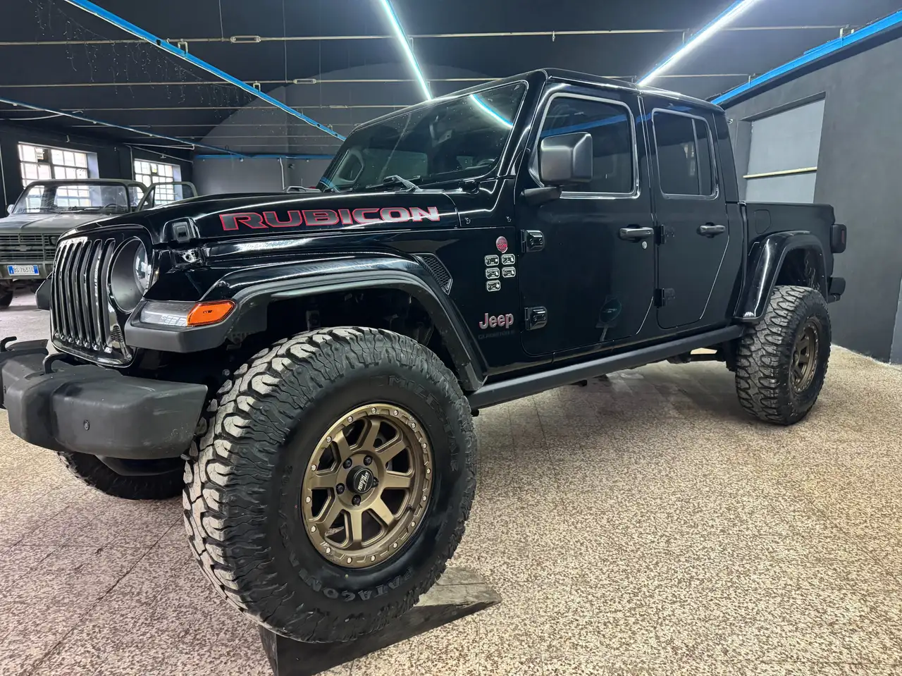 Jeep Gladiator JT Rubicon equipaggiato con motorizzazione 3.6 Pentastar V6. Il veicolo è in versione full optional e dispone di interni in pelle e sistema infotelematico con schermo touch. La dotazione tecnica di serie include ponti Dana 44 anteriori e posteriori, sway bar a disconnessione elettrica e centralina off-road modulabile. Il mezzo presenta una preparazione specifica composta da assetto completo da 2.5 pollici con ammortizzatori Fox e pneumatici nella misura 37x12.50 R17, regolarmente omologati a libretto. Il prezzo richiesto è di 62.000 euro oltre IVA. Disponibile per visione e prova su appuntamento.