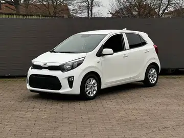 Die Ausstattung umfasst eine manuelle Klimaanlage, elektrische Fensterheber, Zentralverriegelung und beheizbare Vordersitze für angenehmen Fahrkomfort. Das moderne Infotainmentsystem mit Touchscreen, Navigationssystem, Apple CarPlay, Android Auto und Bluetooth-Freisprecheinrichtung sorgt für optimale Konnektivität. Sicherheitssysteme wie ABS, ESP, Front-, Seiten- und weitere Airbags sowie Reifendruckkontrolle bieten umfassenden Schutz. Der Picanto erfüllt die Euro-6-Norm und trägt die grüne Umweltplakette.
