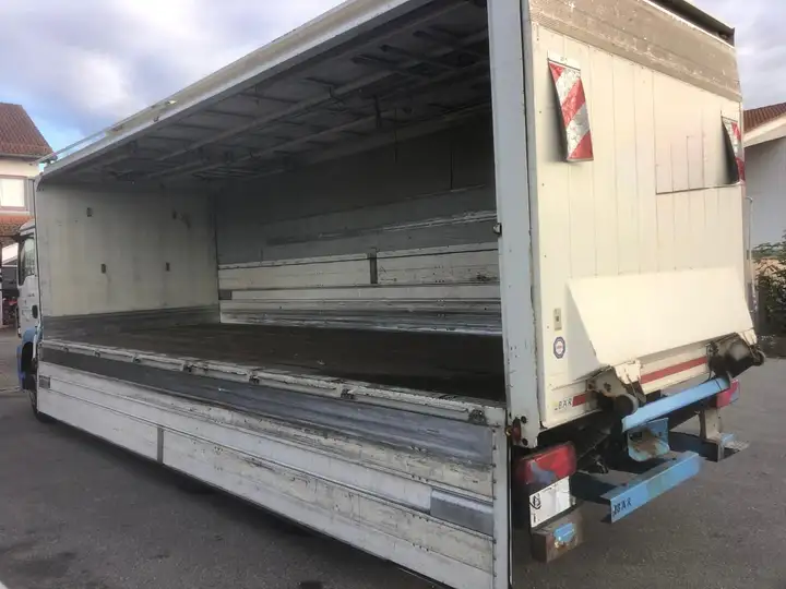 Wir bieten hier einen MAN mit Getränkeaufbau ( Schwenkwände beidseitig ) und Hebebühne hinten.