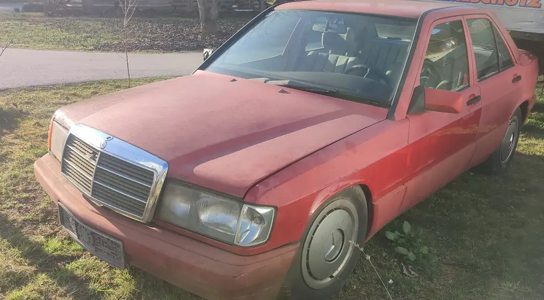 Verkaufe meinen Mercedes 190 w201 im gut erhaltenem aber reparaturbedürftigen Zustand. Motor startet geht jedoch gleich wieder aus wahrscheinlich ist die Benzin oder Vakuumpumpe defekt ist. Rostig ist der Rote Schlitten auch Federn Stoßdämpfer und Service sollten auch gemacht werden. Innenraum ist noch sehr schön außer der Fahrersitz ist ein abgescheuert bei der Lehne.