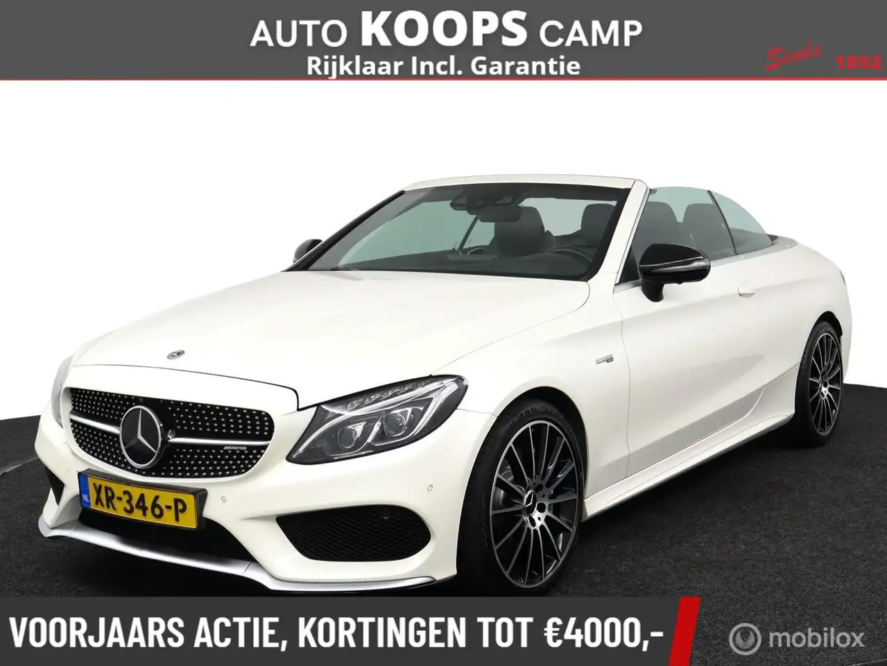 Mercedes-Benz C-klasse Cabrio AMG 43 4MATIC 367Pk Aut-9 | Zwart-leder | Stoelverw./koeling | Sportuitlaat | parelmoer wit metallic | Carbon inleg |elec. stoelen met geheugen| Burmester Audio | DEALER-STAAT