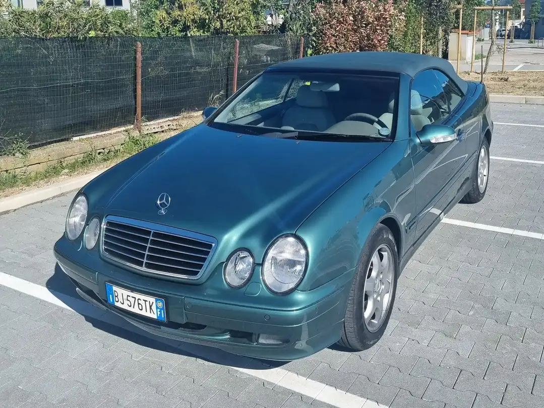 Mercedes BENZ CLK (A208) 230 Kompressor cabrio automatica , versione Elegance anno 2000. Colore verde con capotte verde. Prima vernice. Auto full optional dota di: computer di bordo, fari allo xeno con lavafari, sensori di distanza anteriori e posteriori, autoradio becker originale audio 10 cd. Tutti i libretti presenti. N.2 proprietari precedenti. Perfetta nessun lavoro da fare. Auto iscritta ASI con CRS a libretto. Book service MB completo.