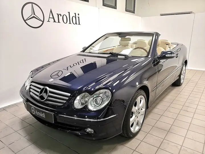 Splendida e rara Mercedes-Benz CLK 500 Cabrio, equipaggiata con motore V8 da 4.966 cc e ben 306 cavalli. Allestimento Elegance, che si sposa perfettamente con l'elegante configurazione cromatica con esterno 359 Blu Tanzanite Metallizzato con Capote Blu Scuro ed interno 835 Pelle totale Beige Keisel. Questo esemplare è inoltre dotato di una ricchissima dotazione accessori, fra i quali troviamo: Sedili anteriori riscaldati e ventilati, Pacchetto Memory con regolazione elettrica dei sedili guidatore e passeggero con memorie, Volante e leva cambio in pelle e legno, Sistema multimediale Comand, Fari Bi-Xenon con lavafari, Clima automatico bizona, Parktronic con sensori di parcheggio anteriori e posteriori, Mirror pack con specchi esterni ripiegabili elettricamente, Frangivento posteriore e Cerchi da 17 pollici.