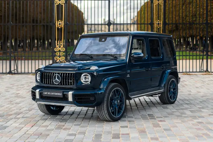 We offer a Mercedes G63 AMG in a rare Night Blue configuration with matching 22" forged wheels, paired with a two-tone Platinum White and Black Nappa G Manufaktur leather interior. This G-Class is in immaculate condition and has covered 24,500 km. Serviced exclusively by Mercedes annually, it will be serviced again prior to the sale. Delivered by the Mercedes dealership in Arlon and currently registered abroad, a €26,800 ecological penalty will need to be added to the sale price to register it in France. It also benefits from recoverable VAT.