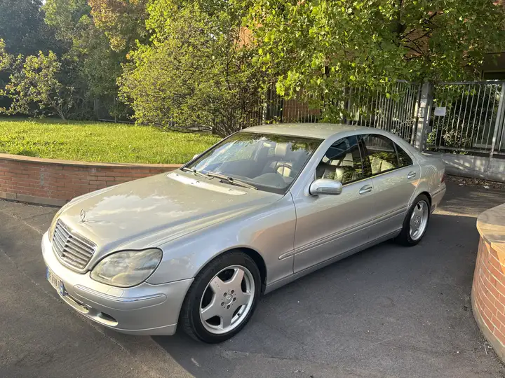 Mercedes-Benz Classe S55 Amg (W220), anno 2000, motore 5.4 V8 da 360 cavalli (265kW), Euro3 benzina, cambio automatico a 5 rapporti, 219.000 km , colore Argento metallizzato (Code 744 Brilliant Silver Metallic), in una rara configurazione SWB (passo corto) e senza kit estetico.