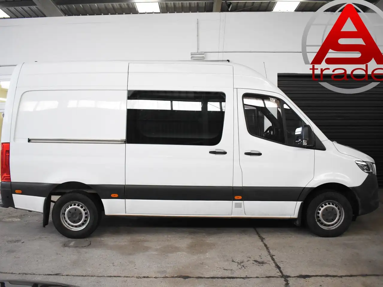 1 DIN-Schacht vorn unter Dachhimmel, Ablage im Dachhimmel Fahrerhaus, Anhängersteckdose 13-polig, DAB-Tuner (Radioempfang digital), Einstiegsgriff an Hecksäule hinten rechts, Fzg. ohne Fahrzeugabsenkung, Fzg. ohne Start/Stop-Anlage, Getränkehalter vorn, Holzfussboden im Laderaum, Induktionsladeschale für Smartphone (Wireless Charging), Innenausstattung: Luftdüsen Instrumententafel, Klappdeckel für Ablagefach, Klappdeckel für Ablagefächer links/rechts, Kraftstofftank: Haupttank 93 Ltr., Kühlergrillrahmen Wagenfarbe, Leitungskanal an Heckportal, Leitungskanal an Seitenwand, Markierungsleuchten seitlich, Multimediasystem MBUX (Touchscreen 7"), Navigationssystem für Multimediasystem MBUX, Park-Paket mit Rückfahrkamera, Scheibenwischer mit Regensensor, Scheinwerfer LED High Performance, Schmutzfänger hinten, Schmutzfänger vorn, Sitze im Fahrerhaus: Beifahrerdoppelsitz, Sitze im Fahrerhaus: Fahrersitz heizbar, Sitze im Fahrerhaus: Schwingsitz Komfort, Fahrerseite, Steckdose 230V im Fahrerhaus, Trittstufe Hecktür, Zusatzheizung (Luft) elektrisch