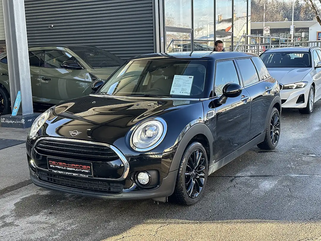 Zum Verkauf angeboten wird ein Mini Cooper Clubman Aut., in der Farbe MIDNIGHT BLACK METALLIC, Interieur Teilleder in Schwarz mit 87.473KM Laufleistung.
