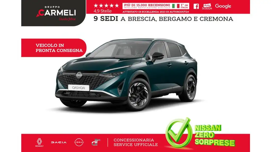 Gruppo Carmeli S.p.A. è Concessionaria e Service ufficiale Renault, Dacia, DR, Nissan, ICH-X e Sportequipe per le province di Brescia, Bergamo e Cremona, con 8 sedi.