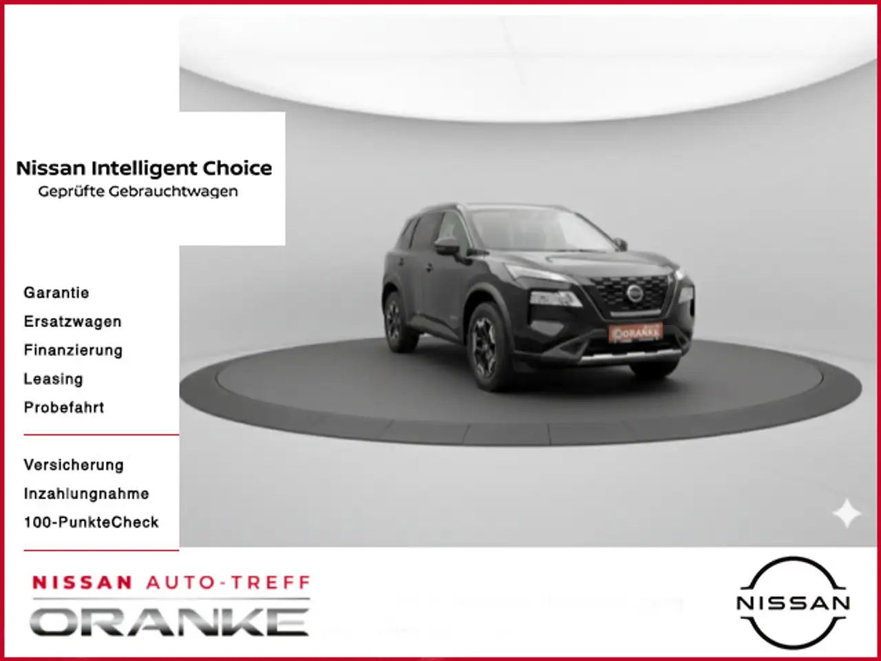 Dienstwagen. Genauer km Stand auf Anfrage., Sondermodell N-Trek, Außenausstattung, el. Heckklappe, LED Blinker, LED Nebelscheinwerfer und LED Rückfahrscheinwerfer, Außenspiegel: Außenspiegel el. einstellbar, beheizbar und automatisch anklappbar, LED-Rückleuchten, Fahrlichtautomatik, LED-Scheinwerfer mit adaptivem Fernlichtassistent, LED-Tagfahrlicht, 18"-Leichtmetallfelgen, Dachreling, silber, Tankverschluss (push/pull), Regensensor, Innenausstattung, Schwebende Mittelkonsole mit Butterfly-Öffnung, Sonnenbrillenfach, Taschen auf der Rückseite der Vordersitze, Ausklappbare Mittelarmlehne hinten mit 2 Getränkehaltern, Kleiderhaken hinten, Kofferraumbeleuchtung, Lenkrad, beheizbar, Lenkrad, lederummantelt, Lenksäule, höhen- und tiefenverstellbar, Sonnenblenden mit Make-up-Spiegel, Fahrer und Beifahrer, Sonnenschutzrollos für die 2. Reihe, 3-Zonen-Klimaautomatik, Modulares Verstausystem im Kofferraum, Herausnehmbarer Kofferraumboden, einteilig, Fahrer und Beifahrersitz el. verstellbar mit Memory, Lordosenstütze elektrisch einstellbar, Rücksitzbank geteilt verschiebbar (60/40) und 3-teilig umklappbar (40/20/40), Sicherheit und Technik, Intelligente autonome Einparkautomatik, ProPilot mit NaviLink, ABS mit el. EBD, Berganfahr-Assistent, Einparkhilfe, hinten, Einparkhilfe, vorne und hinten, Elektronisches Stabilitätsprogramm (ESP), Fernlicht-Assistent, Intelligenter Spurhalte-Assistent aktiv mit korrigierendem Bremseingriff, Querverkehrs-Warner, Rückfahrkamera in Farbe und 360 Grad, Intelligenter Adaptiver Geschwindigkeits- und Abstands-Assistent, Intelligenter Around View Monitor für 360° Rundumsicht, 8"-Farbdisplay mit Touchscreen, Reifendruck-Kontrollsystem, Bluetooth®-Schnittstelle für Mobiltelefon und Audio-Streaming, 12,3“ Touchscreen inkl. TomTom® Services mit Premium-Verkehrsinformationssystem, 3 Jahre kostenlose Kartenaktualisierung, Infotainment & Navigation: 6 Lautsprecher, Apple Carplay® und Android Auto®, Auto-Hold-Funktion, Infotainment & Navigation: Basis Services NissanConnect App (kostenfrei), Digitales Cockpit mit 12,3“-TFT-Bildschirm, DAB, Haifisch-Antenne, In-Car-WiFi, integrierte Spracherkennung für Audio und Telefon, Intelligenter Around View Monitor für 360° Rundumsicht mit Bewegungserkennung, Nissan Help & Support (verfügbar über die App NissanConnect), Nissan on Google Assistant™ und on Amazon Alexa®, NissanConnect Infotainment, NissanConnect Navigation, NissanConnect Navigationssystem mit 12,3'' Display, NissanConnect Services, NissanConnect Services Infotainment, NissanConnect App (in den ersten 3 Jahren kostenfrei), NissanConnect App exkl. Karten & Live Verkehr, USB-Eingang (Typ A) vorn und hinten, USB-Eingang (Typ C), je einer für vorne und hinten, 2. Sitzreihe beheizbar, Beheizbare Frontscheibe (Thermaclear), Elektronische Parkbremse (e-PKB) mit automatischer Deaktivierung beim Anfahren, Innenspiegel automatisch abblendbar, Sitzheizung, vorne und hinten, Fahrmodi: Standard, Sport, Eco, Intelligent Key mit Keyless Entry und Start/Stopp-Knopf, Alarmanlage, Fahrer- und Beifahrerairbag, Intelligente Müdigkeitserkennung, Intelligenter Autonomer Notbrems-Assistent hinten für feststehende und sich langsam bewegende Objekte, Intelligenter Autonomer Notbrems-Assistent vorne mit Fußgänger- & Radfahrererkennung und Kreuzungs-Assistent, Intelligenter Frontkollisionswarnungs-Assistent, ISOFIX-Kindersitz-Befestigungspunkte, hinten, auf den äußeren Plätzen inkl. Top Tether(R), Notruf und Pannenanruf (eCall), Seitenairbags vorne, Totwinkel-Assistent aktiv mit korrigierendem Bremseingriff, Vorhang-Airbags, Zentralairbag, rechte Seite des Fahrersitzes, Start-/ Stopp-Knopf, Steckdose, 12-Volt, 2-fach, BARPREIS. Einen Nissan kauft man im Nissan Autohaus, also bei Oranke! Bester Service vom Vertragshändler! Fragen Sie nach unseren günstigen Leasing-und Finanzierungsangeboten für Privat und Geschäftskunden. Inzahlungnahme aller Typen auch mit Kreditablösung. Unser Team freut sich auf Ihren Anruf. Anmerkungen! Preisänderung, Zwischenverkauf und Irrtümer für dieses Angebot sind ausdrücklich vorbehalten. Die Fahrzeugbeschreibung dient lediglich der allgemeinen Identifizierung des Fahrzeuges und stellt keine Gewährleistung im kaufrechtlichen Sinne dar. Ausschlaggebend sind einzig und allein die Vereinbarungen in der Auftragsbestätigung oder im Kaufvertrag. Den genauen Ausstattungsumfang erhalten Sie von unserem Verkaufspersonal. Bitte kontaktieren Sie uns, Garantie 36 Monate ab Tag der Erstzulassung oder 100.000 km