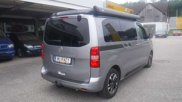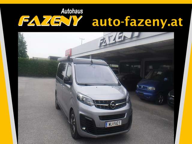 CROSSCAMP mit Ausstelldach, Markise, Drehsitze vorne, Kühlschrank und Gasherd.