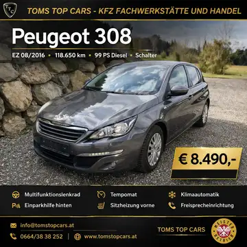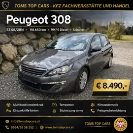 Peugeot 308 Style, EZ 08/2016, 118.015 KM, grau-metallic, Glanzpaket (Innenreinigung u. Politur), Werkstattgeprüft, Transparente Fahrzeughistorie,