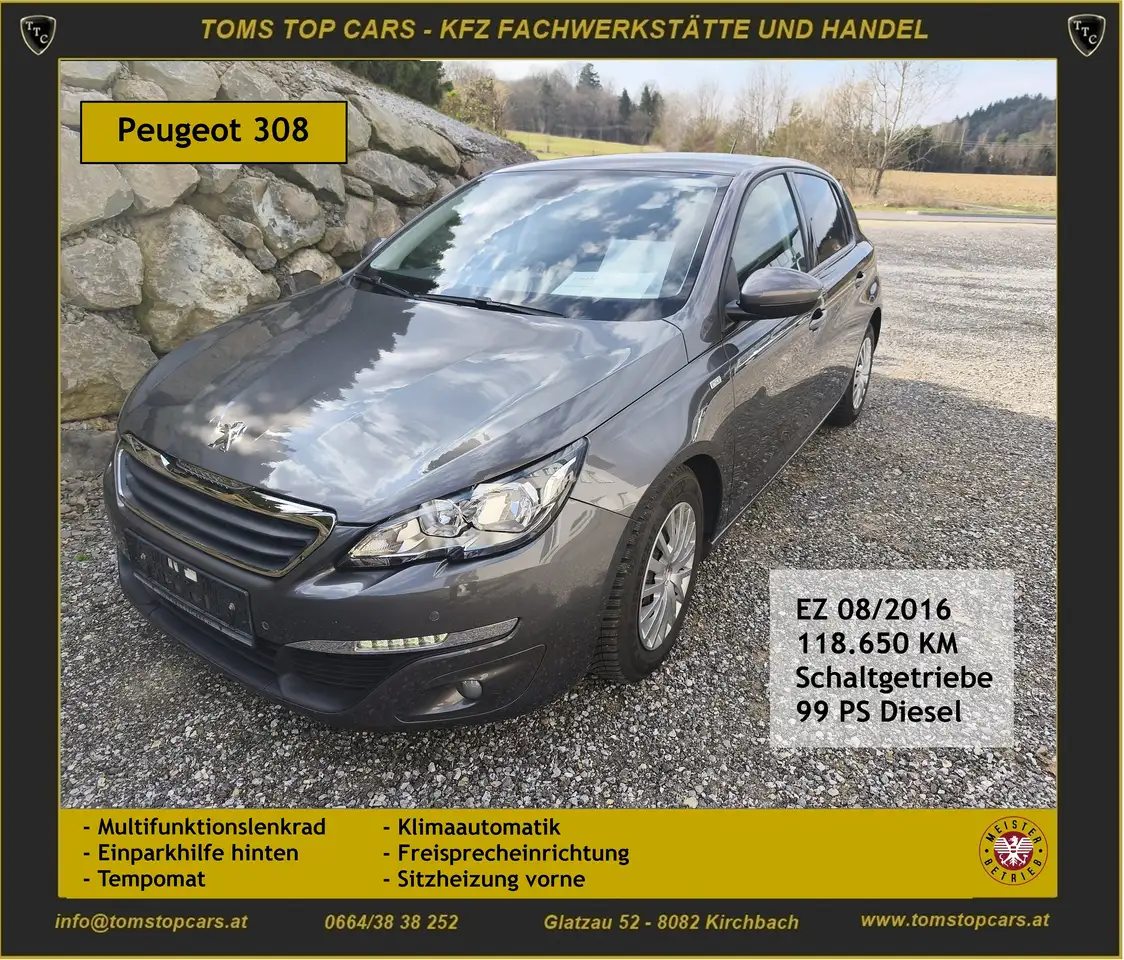Peugeot 308 Style, EZ 08/2016, 118.015 KM, grau-metallic, Glanzpaket (Innenreinigung u. Politur), Werkstattgeprüft, Transparente Fahrzeughistorie,