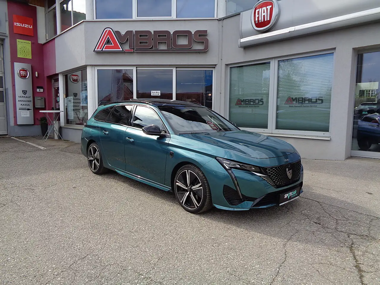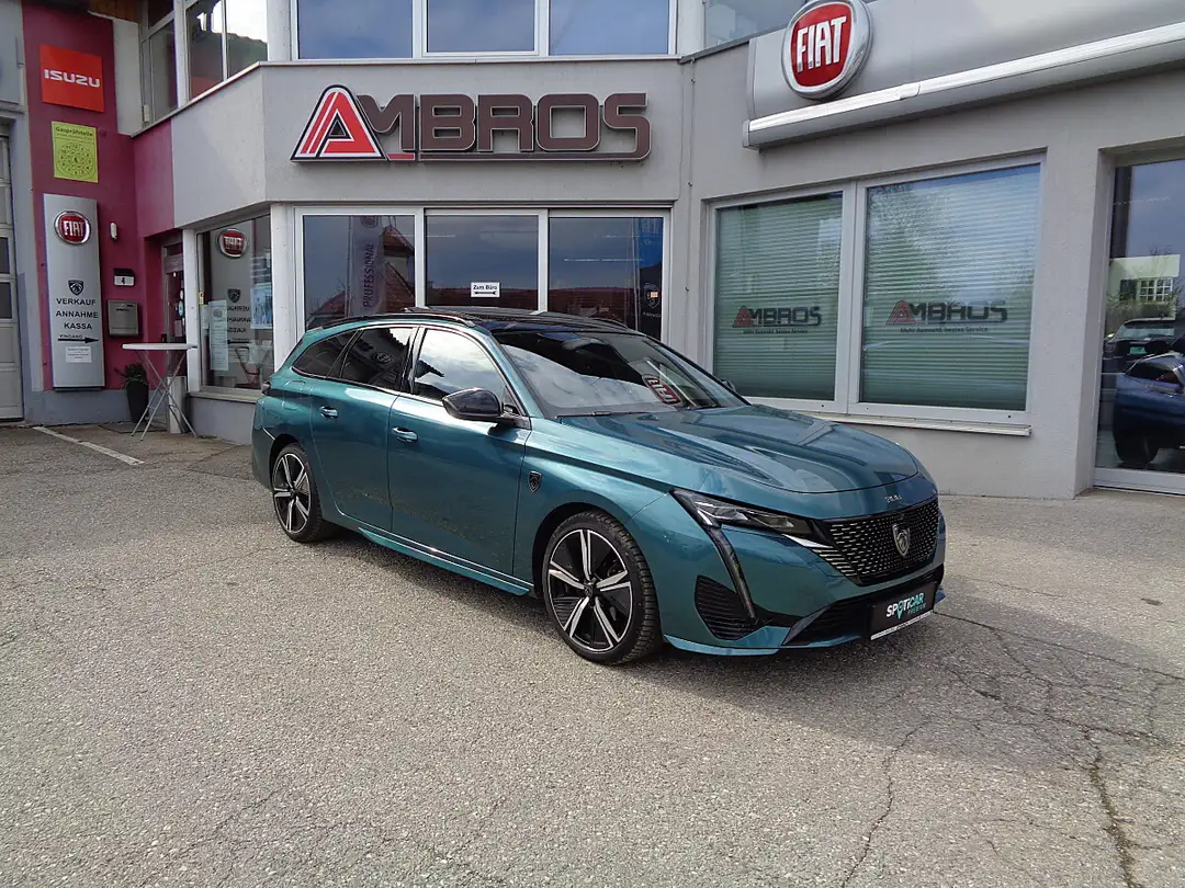 VOLLAUSSTATTUNG, Leasingfähig MwSt. ausweisbar, Metallic Lackierung, Premium-Paket − Panorama-Ausstell-/Schiebedach mit Jalousie − Induktive Ladestation1) − FOCAL-Soundsystem, Komfort-Paket Plus − Polsterung Alcantara/ Kunstleder mit Ziernähten in Grün − Ergonomische Komfortsitze mit AGR-Gütesiegel − Elektrisch anpassbare Seitenkissen für Fahrer- und Beifahrersitz AGR*-zertifiziert − Fahrersitz elektrisch verstellbar, mit Memory-Funktion − Massagefunktion für Fahrer- und Beifahrersitz − Neigungsverstellung der Sitzfläche elektrisch auf Fahrer-und Beifahrerseite − Oberschenkelauflage auf Fahrer- und Beifahrerseite ausziehbar − Sitzheizung vorn − Lenkradheizung − Gepäckraumtrennnetz, Surrounding-Paket Plus − Toterwinkelassistent − Spurpositionierungsassistent − Rückfahrkamera mit 360°-Umgebungsansicht − Einparkhilfe vorn, akustisch und visuell − Alarmanlage inkl. Rundum-, Innenraumschutz und Safesicherung − HD-Rückfahrkamera mit 360°-Umgebungsansicht − Ausparkassistent Rear Cross Traffic − Digitales Kombiinstrument mit 3D-Funktion − Heckklappe sensorgesteuert, Navigations- & Zugangspaket − Navigations Paket, PEUGEOT i-Connect Advanced1) 3D Navigationssystem, Übertragung der Karte auf das digitale Kombiinstrument, natürliche Sprachsteuerung "OK PEUGEOT" für Navigation, Telefon, Klimaanlage und Media, Echtzeitnavigation" by (TomTom Services, Verkehrsinformationen, Tankstellen, Parkplätze, Wetter, lokale Suche), Gefahrenzonenwarnung (6-monatiger Testzeitraum inkludiert, danach kostenpflichtiges Abonnement)1), PEUGEOT Connect Box1) & Telematikdienste1) − Keyless-System Plus (Schlüsselloses Zugang- und Startsystem) − Induktive Ladestation (15 W), Kompaktes Multifunktions -Lederlenkrad mit GT -Schriftzug Grüne Ziernähte am Armaturenbrett, Lenkrad und den Armlehnen der Vorder - und Hintertüren LED -Ambientebeleuchtung am Armaturenbrett und an der Türverkleidung, einstellbar in 8 Farben Dekoreinlagen aus Aluminium für Türverkleidungen und Armaturenbrett Pedalerie Aluminium, Full -LED -Matrix -Scheinwerfer mit Fernlichtassistent und Leuchtweitenregulierung automatisch LED -Blinklicht vorn PEUGEOT Connect Box, Dachhimmel in Schwarz + Dachreling in hochglänzendem Schwarz (beim 308 SW) + PEUGEOT 3D i-Cockpit mit digitalem 3D-Kombiinstrument mit hochauflösendem 10"-Bildschirm + Full-LED-Matrix Scheinwerfer + Einparkhilfe vorn, akustisch und visuell + LED-Ambientebeleuchtung in acht Farben + GT-Seitenschweller; -Frontstoßstange und -Kühlergrill + PEUGEOT Connect Box + Make-up-Spiegel für Fahrer und Beifahrer beleuchtet + Pedalerie und Einstiegsleisten in Aluminium + Schlüsselloses Zugangs- und Startsystem, Zweifarbige Leichtmetallfelgen „Kamakura“ 18", uvm. Weitere Fahrzeuge finden Sie unter: www.ambros-automobile.at