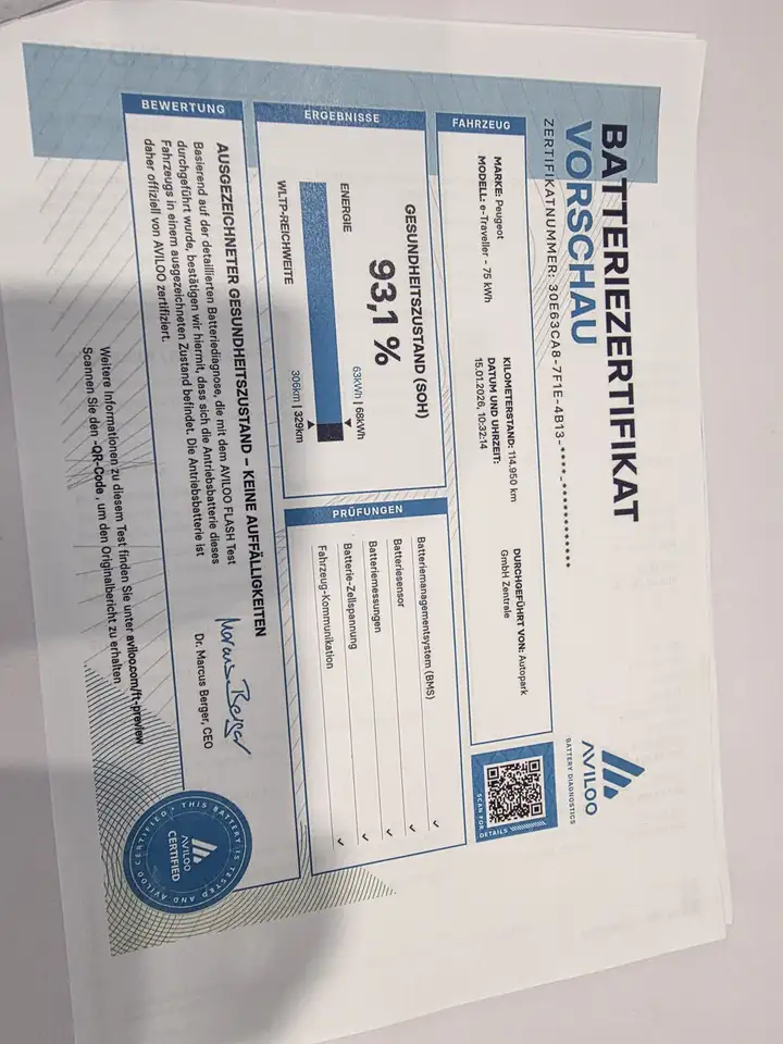 16.01.25 Ankaufstest durchgeführt beim Autopark Innsbruck. Hochvoltbatterie 93,10%.