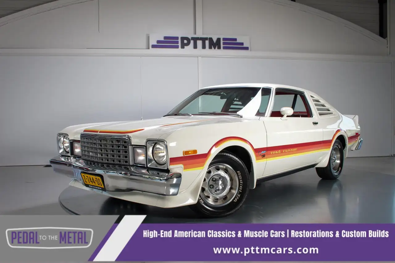 Pedal to the Metal Muscle Cars presenteert met trots deze 1978 Plymouth Road Runner, een zeldzaam, low-production, numbers-matching exemplaar uit de persoonlijke collectie van onze eigenaar. Met minder dan 1.357 geproduceerde exemplaren dat jaar en slechts 617 uitgerust met de optionele Super Pak, is dit een uitzonderlijk voorbeeld van Amerikaanse muscle cars uit het einde van de jaren zeventig. Met een opgefrist exterieur, gerestaureerd interieur en originele aandrijflijn combineert deze auto zeldzaamheid, stijl en prestaties perfect.