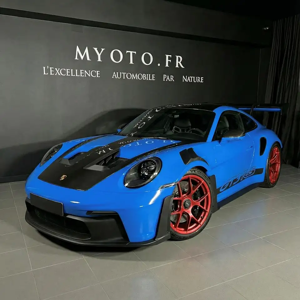 Affichage des limitations de vitesse;Bleu Requin;Cuir/Race Tex Noir/Argent GT (Weissach);Etriers de frein PCCB en Noir;Fond de compteurs en Blanc;Fond du chronomètre en Blanc;JA forgé magnésium GT3 RS 20 / 21 pouces;Jantes peintes en Rouge Pyro;Pack fumeur;Pack luminosité;Pack Weissach;Phares matriciels LED teintés + PDLS+;Porsche Ceramic Composite Brake (PCCB);Réservoir de carburant de 90 litres;Rétros int+ext électrochro+capteur pluie;Système de levage de l'essieu avant;Vitrage en verre léger fumé - insonorisé;film de protection partie avant;garantie porsche mars 2028;suivi porsche complet;JA forgé magnésium GT3 RS 20;21 pouces