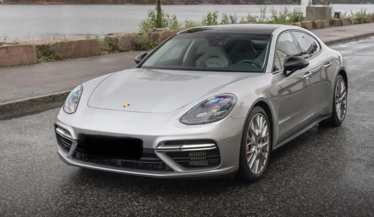 couleur Gris GT métallisé, intérieur cuir gris clair, Pack Intérieur Carbone, jantes Panamera SportDesign 21" couleur carrosserie, étriers de freins rouges, Pack Extérieur Noir Brillant, sièges sport adaptatifs avec pack mémoire, échappement sport noir brillant, direction assistée Plus, volant chauffant, toit panoramique, vitres teintées, phares LED Matrix PDLS Plus, ParkAssist avec vue panoramique, fermeture assistée des portes, rétroviseurs extérieurs noir brillant, Pack Sport Chrono, Pack Éclairage, essuie-glace arrière.