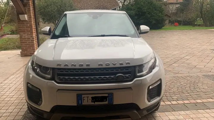 Range rover evoque bianca di prima generazione (LV), specificamente un modello 2.0 ED4 Pure FWD (trazione anteriore), con 160'000 km, 5 porte con gancio traino estraibile, pneumatici 4 stagioni sostituiti primavera 2025