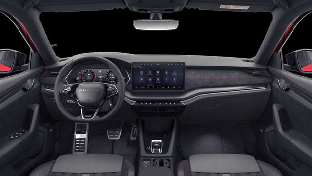 8 Lautsprecher, Ablagefächer (Gepäck-/Laderaum), Ablagetasche an Vordersitzlehnen, Außenspiegel schwarz lackiert und Türgriffe außen in Wagenfarbe, Bremssättel Rot lackiert, Brillenfach, Dachhimmel schwarz, Doppeltonfanfare, Edelstahlpedale Sportdesign, Einstiegsleisten (Aluminium-Design), Fahrassistenz-Paket: Travel Assist, Fensterzierleisten schwarz, hochglänzend, Funkschlüssel (3) klappbar, Fußraumbeleuchtung vorn und hinten, Gepäck-/Laderaumabdeckung elektrisch, Gepäckraum-Abtrennung (Netz), Handschuhfach beleuchtet, Induktionsladeschale für Smartphone, Innenausstattung: Dekoreinlagen Dark Carbon, Innenausstattung: Luftausströmer Schwarz, Kindersicherung elektr. betätigt, Kofferraumbeleuchtung, Kopfstützen vorn und hinten verstellbar, Kühlergrill schwarz, Lehnenentriegelung der Rücksitzlehne im Kofferraum, Lenksäule (Lenkrad) verstellbar (vertikal / axial), Leseleuchten vorn und hinten, Mobile Online Dienste, Modellpflege, Motor-Schleppmoment-Regulator (MSR), Parkbremse elektronisch, Progressivlenkung, Reifen-Reparaturkit, Schadstoffarm nach Abgasnorm Euro 6e, Sitzbezug / Polsterung: Stoff RS schwarz mit Ziernaht, Sitze vorn höhenverstellbar inkl. Lendenwirbelstütze verstellbar, SKODA Care Connect & Infotainment Online, Sonnenblende links mit Spiegel, Sonnenblenden mit Spiegel (LED-Beleuchtung), Textilfussmatten, Türen mit Warnleuchte, Warnanlage für Sicherheitsgurte hinten, Warnanlage für Sicherheitsgurte, Fahrer-/Beifahrerseite, Akustikglas Türscheiben vorn, Biker-Paket, Fahrassistenz-System: Spurwechselassistent inkl. Auspark-Assistent und Ausstiegswarnung, Abbiege- und Allwetterlicht / Schlechtwetter-Licht, Reserverad als Notrad (18), Insassen-Schutzsystem proaktiv