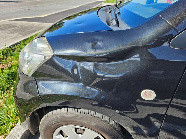 * Vorne links ist eine Delle, die stammt laut Angabe des Vorbesitzers von einer leichten Kollision mit einem Motorradfahrer, allerdings gibt es keine Beschädigung im Lack.