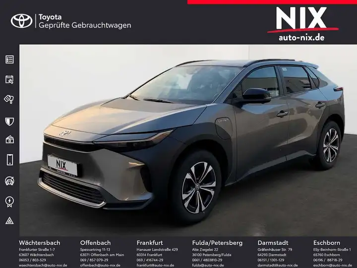 Interne Nr. 0A013141, Neuwagen-Herstellergarantie bis Juli 2026 oder 100.000KM, -Toyota Smart Connect Plus mit Cloud- und Onboard-Navigation -360° Kamera System -Kabelloses Smartphone Ladegerät -Lenkrad, beheizbar -Aufmerksamkeitsassistent (DMC) -12,3" Multimedia Display -Außenspiegel, Toter-Winkel-Warner (BSM) -Regensensor -Alarmanlage, Glasbruchsensor -Sitz Fahrer, Lordosenstütze elektrisch -Einparksensoren, mit Bremsunterstützung (ICS) -Sitz Fahrer, Längsverstellung elektrisch -Sitze vorne, Sitzheizung -Einstiegs- & Fußraumbeleuchtung -Heckklappe, elektrisch -18'' Leichtmetallfelgen (mit Aerodynamik-Radabdeckung), mit Bereifung 235/60R18 -8" Multimediadisplay -Bluetooth® Freisprecheinrichtung -USB-Anschluss, hinten (2, Typ C) -Sprachsteuerung -USB-Anschluss, vorn (2, Typ C) -Toyota Smart Connect mit Cloud-Navigation -Smartphone Integration, Apple Carplay und Android Auto -MyToyota Connected Services -Lautsprecher 6 -Alarmanlage, Einbruchsensor -Gurtwarnsystem vorne, optisch und akustisch -Pre-Collision-System, Verkehrsteilnehmererkennung -Wegfahrsperre -Rückfahrkamera -Reifendruck-Warnsystem (TPWS) -Spurverfolgungsassistent (LTA) -Akustischen Fahrzeug-Warnsystem (AVAS) -Spurhalteassistent (LDA), mit Lenkunterstützung -Türverriegelung, Kindersicherung hinten -Gurtwarnsystem hinten, optisch und akustisch -Verkehrszeichenerkennung (RSA) -E-Call System -Pre-Collision-System, Verkehrsteilnehmererkennung -Geschwindigkeitsregelanlage, adaptiv -Airbag, Beifahrer/Fahrer seitlich -Notbremsassistent -Toyota Safety Sense -Airbag, Beifahrer/Fahrer vorn -Pre-Collision System: Kreuzungsassistent -Airbag, Beifahrer/Fahrer zentral -Antenne DAB -Außenspiegel, beheizbar -Onboard-Carger (AC 11 kW, DC 150 kW) -Ladekabel (Haushalt, 230V Schuko, 10A) -Ladekabel Typ2 (Mennekes, 32A, 7,5m) -Sitz Beifahrer, Höhenverstellung manuell -Klimaautomatik, 2-Zonen -Smart-Key-System: schlüsselloses Öffnen/Verschließen des Fahrzeugs über Fahrer-, -Beifahrertür und Heckklappe sowie Starten des Motors per Start-/Stop-Knopf -Wärmepumpe -7" Multi-Info-Display -Zentralverriegelung -Getränkehalter 2, vorne -Lenkrad, Leder 3-Speichen -Lenkrad, höhenverstellbar/manuell -Konsolenbox vorne -Sitz Fahrer, Längsverstellung manuell -Innenraumbeleuchtung, zentral LED -Sonnenblende Fahrer, Beleuchtung -Lenkrad, längsverstellbar/manuell -Follow-me-Home Funktion (Scheinwerfer) -Bremsleuchten LED -LED-Tagfahrlicht -Fernlicht Assistent (AHB) -Fensterheber, elektrisch ("One-Touch") -Rückleuchten, LED -LED-Scheinwerfer We speak english, Nous parlons aussi français, Hybrid Zentrum und größte Toyota Gebrauchtwagenauswahl im Rhein-Main Gebiet. 10 MIN vom Flughafen FFM entfernt. Die Fahrzeugbeschreibung dient lediglich der allgemeinen Identifizierung des Fahrzeuges und stellt keine Gewährleistung im kaufrechtlichen Sinne dar. Die Angaben erheben nicht den Anspruch auf Vollständigkeit und sind ohne Gewähr. Zwischenverkauf, Irrtum und Änderungen vorbehalten!