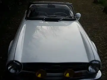 Der TR6 fährt einwandfrei und macht richtig Spaß. Der Charme des Wagens ist nicht wegrestauriert und in einem originalgetreuen Zustand belassen worden. Verdeckabdeckung und Vollpersenning vorhanden. Die Spiegel von Engelmann sind in den originalen Löchern verschraubt und können gegen Chromspiegel getauscht werden. Ich habe den Wagen aus erster Hand gekauft, stets im Sommer bewegt und optisch mit Augenmaß aufgewertet, die Hohlräume sind mit Mike Sander Fett behandelt. Zum Auto gehören noch 5 originale Stahlfelgen (neu lackiert mit Kappen), in Wagenfarbe ein Hardtop, zusätzliche Heckhaube für Gepäckträger und viele Kleinteile die zusätzlich verkauft werden. Ich trenne mich von dem Auto weil ich mich für einen 911er entschieden habe.