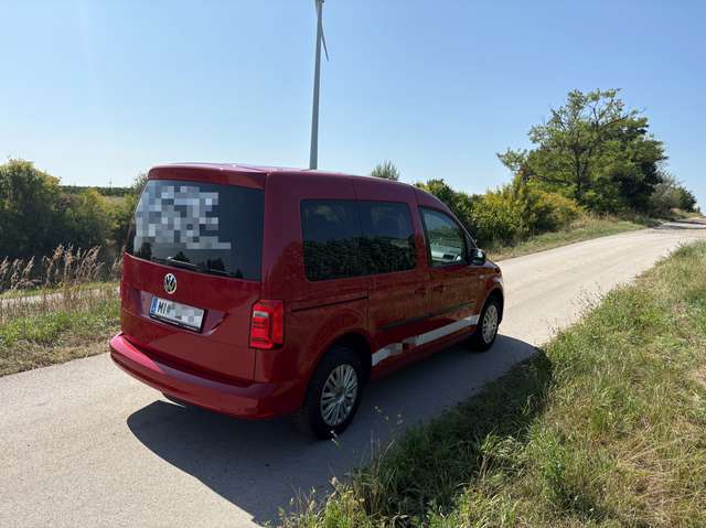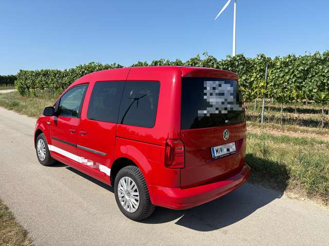 Zum Verkauf steht ein gepflegter VW Caddy Maxi EcoFuel in Firmenfarbe (Rot, Feuerschutz Bayer GmbH-Beklebung). Das Fahrzeug wurde stets regelmäßig gewartet und befindet sich technisch in einwandfreiem Zustand.