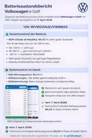 - Volkswagen e-Golf 35,8kWh (Batterie 94,43 % SOH)